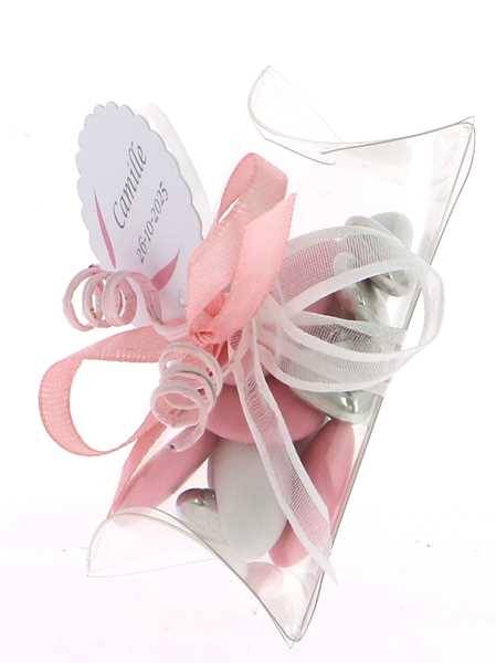 -Contenant dragées livré confectionné artisanalement et garni de dragées par mes soins dans mon atelier.