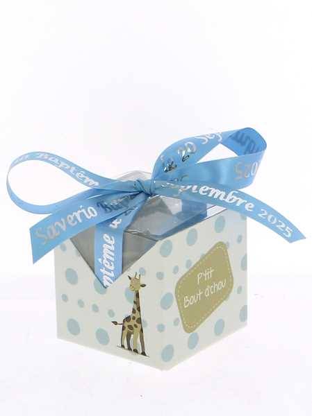 Boite Dragées Cube Girafe Personnalisée - Dragées Baptême Jungle