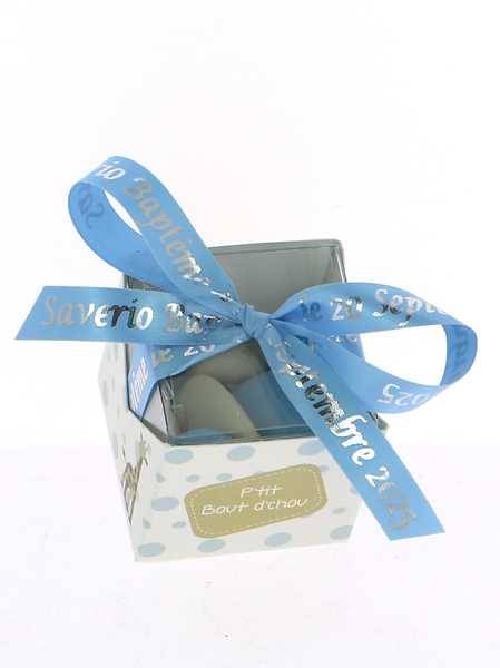 Offrez un cube dragées tendance sur le thème baby jungle avec une adorable girafe. Rempli de dragées amande et chocolat, il est décoré d'un ruban personnalisé pour un souvenir unique. Ce cadeau invités est idéal pour un baptême, une baby shower ou la naissance de votre enfant.