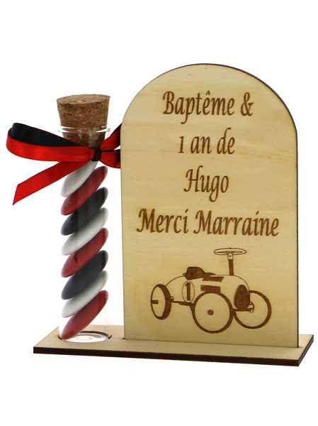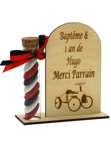 Cadeau Parrain Marraine Éprouvette Bois Personnalisée Voiture Vintage - Baptême Voiture