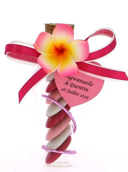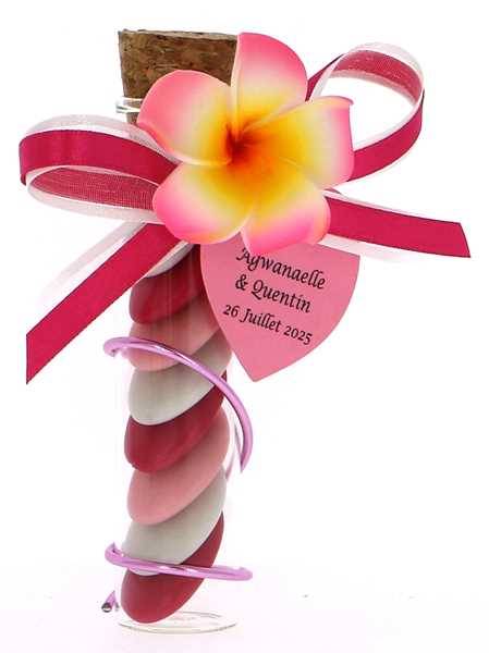 Éprouvette Dragées Mariage Fleurs des Îles Rose - Cadeaux Dragées Mariage